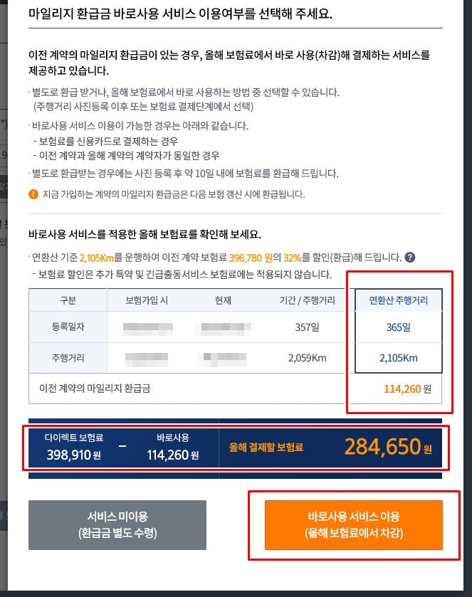 주행거리 할인을 환급금으로 받을건지 이번 보험료를 차감할건지 물어보네요~