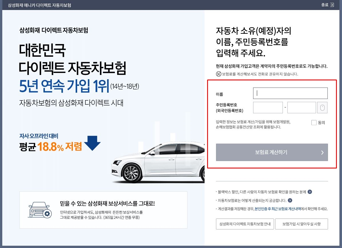 그래서 이름 있고 믿을만 하면서 가격 저렴한 곳을 찾다가 삼성화재 다이렉트 자동차보험에 가입을 했습니다.