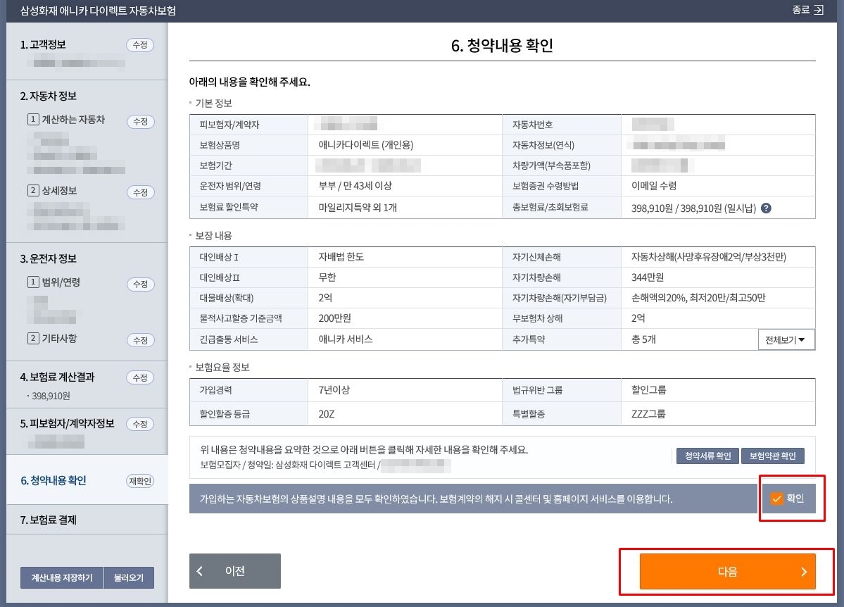 최종 자동차보험 가입 내용입니다.