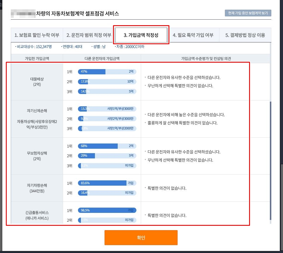 개인적으로 제일 마음에 드는 서비스인데, 다른 운전자들이 많이 가입한 보험 내용을 확인할수 있어서 좋았습니다.