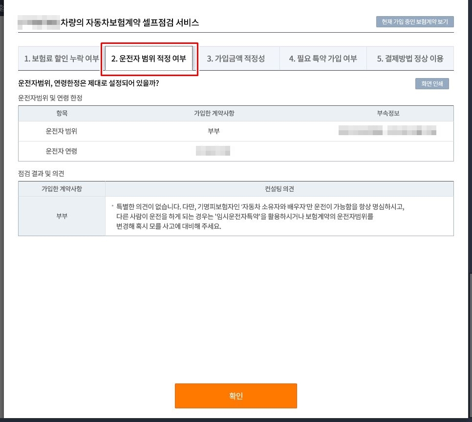 다음은 2번 '운전자 범위 적정 여부' 인데, 특별한 내용은 없고 확인 정도만 하면 될거 같습니다.