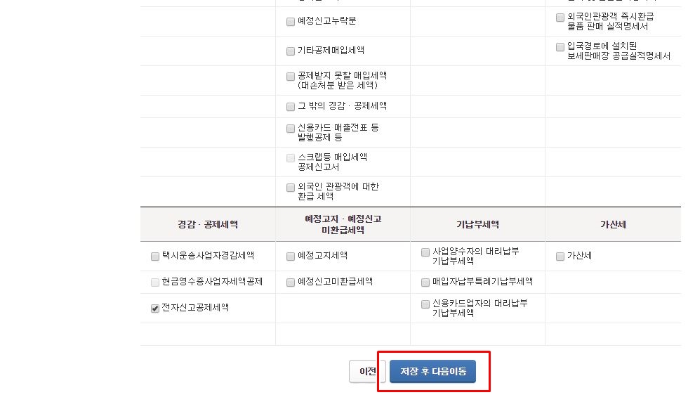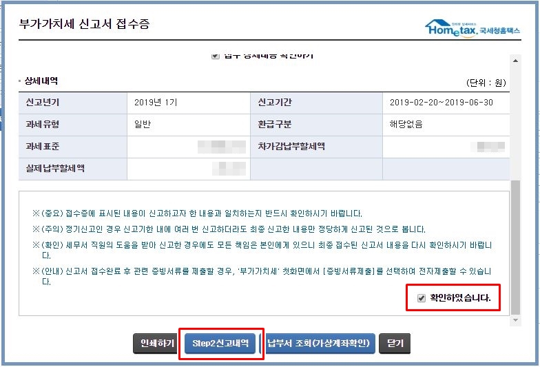 신용카드 공제여부를 모두 확인 및 변경 하셨다면, 이제 부가세 신고를 진행하시면 됩니다.