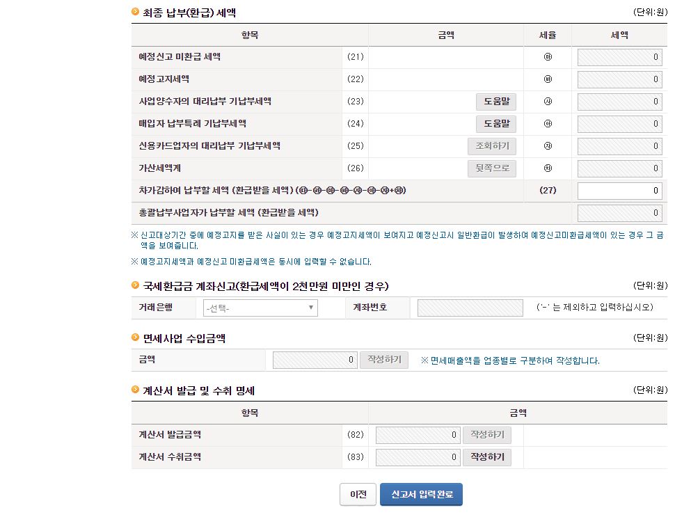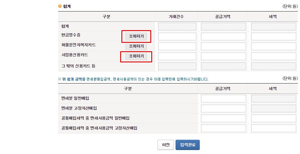 그럼 신용카드와 현금영수증 관련 발행 금액을 입력해 주시면 됩니다.