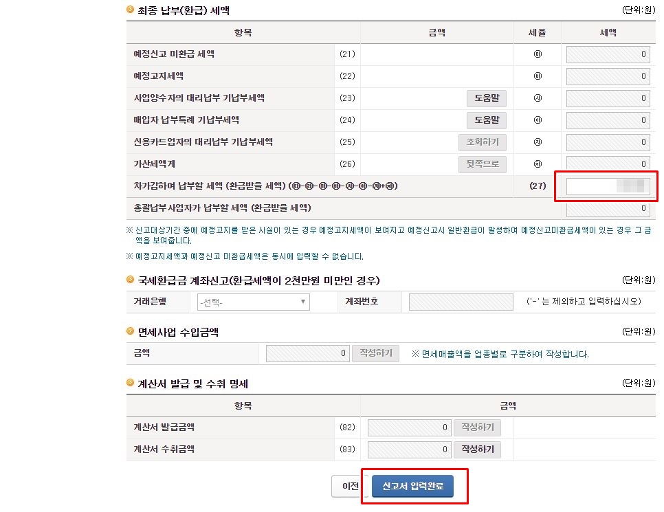 다음 페이지에서 최종 금액을 확인하시고, '신고서 제출하기' 버튼을 클릭하시면, 부가세 신고가 완료가 됩니다.
