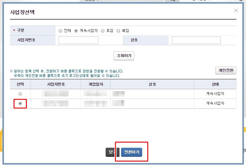 사업장이 하나이신 분들은 하나만 있으실 테고, 여러개 이신 분들은 그중에서 선택하시면 됩니다.