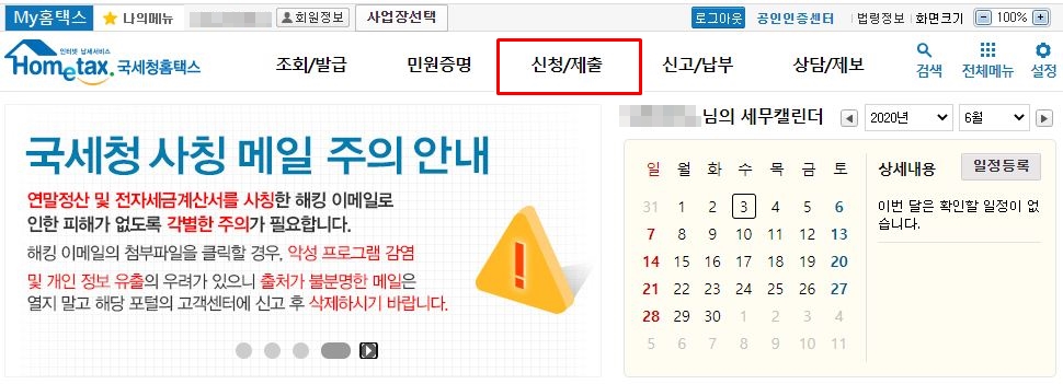 인터넷 홈택스로 간단히 신청이 가능하니, 정말 편한거 같습니다.