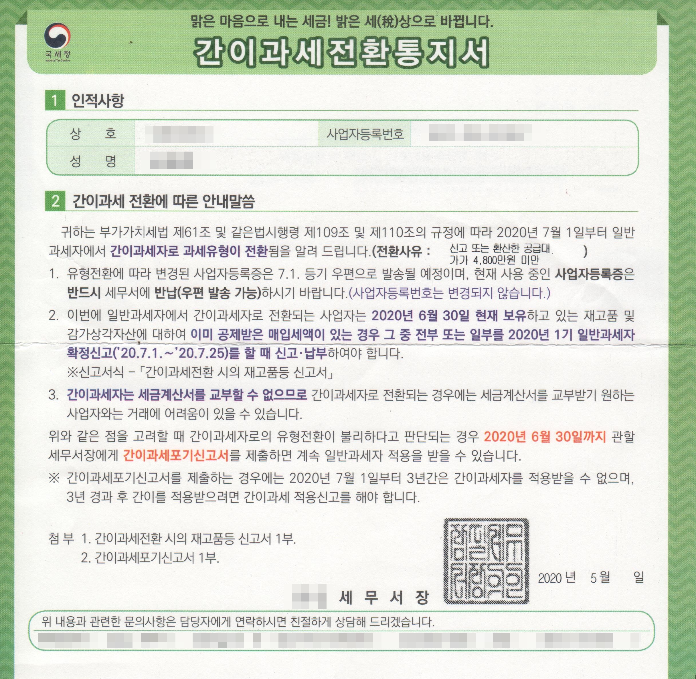 간이과세자전환통지서를 받으신 분들이 계실겁니다.