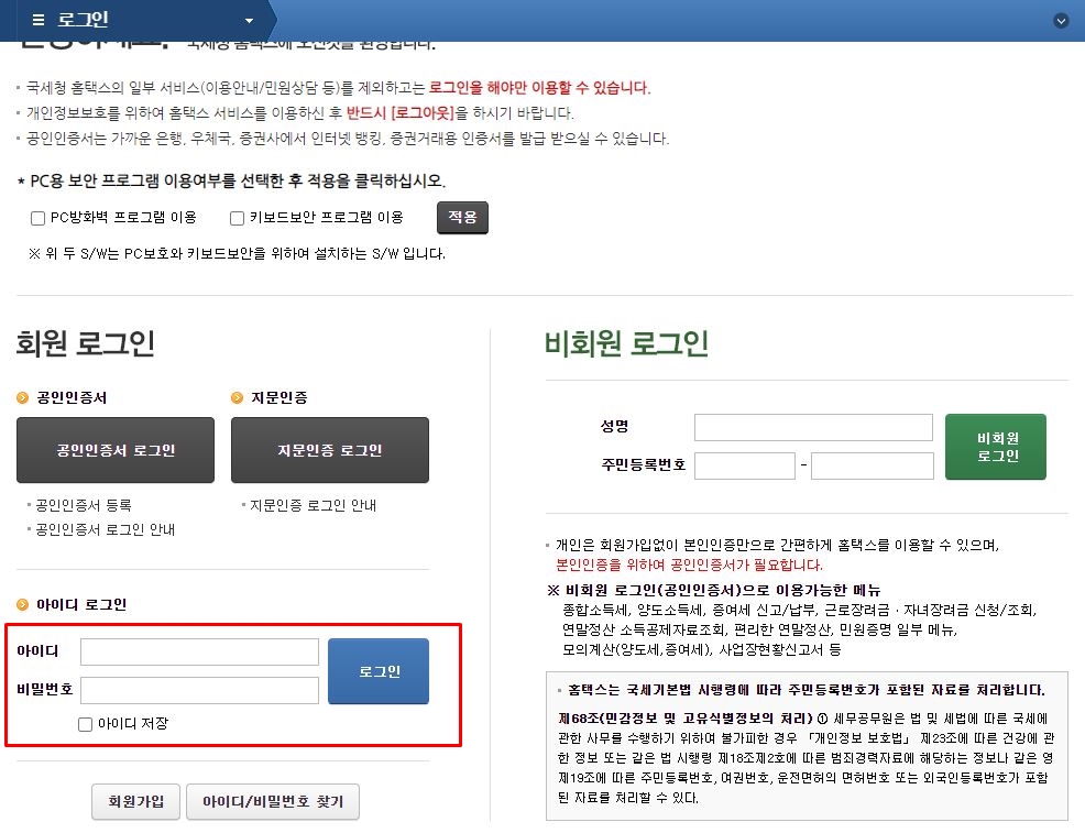 본인의 아이디와 비밀번호를 입력하고 로그인을 하시면 됩니다.
